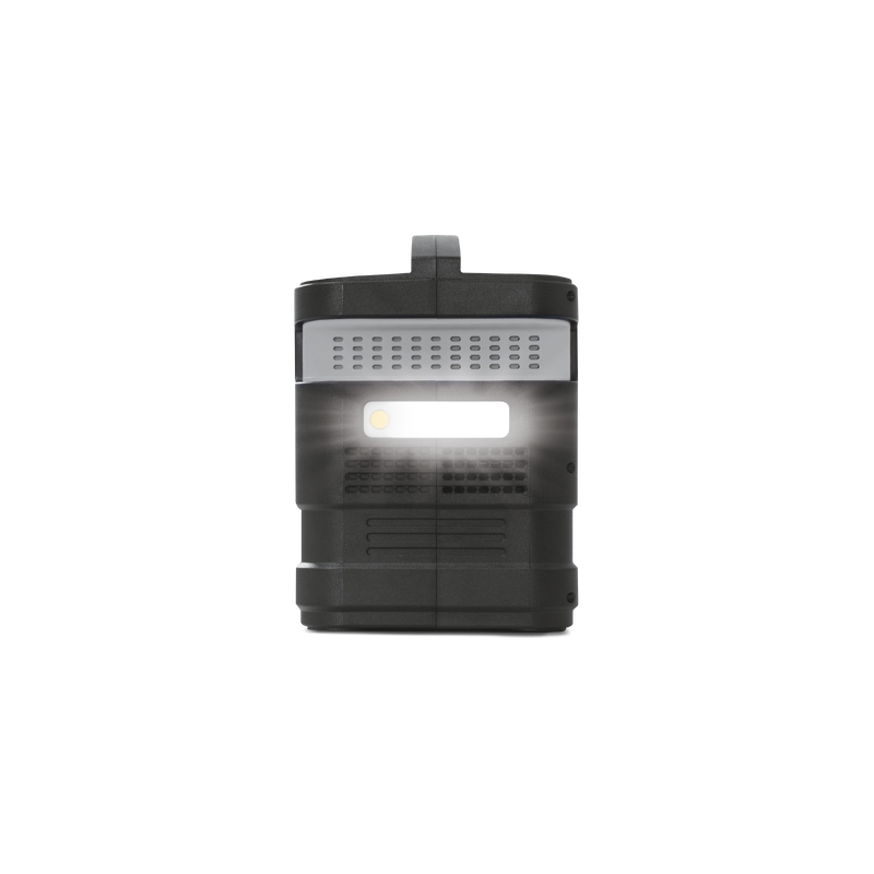 • est rechargeable de 3 façons : chargeur 230 V - chargeur de voiture via entrée DC 12 V - panneau solaire 100 W