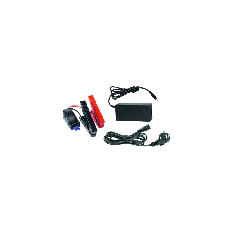 • peut démarrer en quelques secondes des véhicules équipés de batterie 12 V (liquide, gel, AGM, Start&Stop) déchargées (intensité de démarrage : 500 A) grâce à la paire de pinces de démarrage intelligente fournie